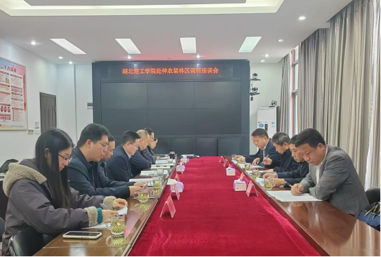 马遥代表神农架林区对校领导一行表示欢迎,介绍了神农架林区保护与发展情况。湖北理工学院学科门类齐全,优势特色明显;林区生态资源丰富,绿色发展优势突出,双方合作基础良好、空间广阔。挂职干部为林区发展注入了活力,对挂职干部的工作表现给予了充分肯定和高度评价。他希望以此次调研交流为契机,进一步凝聚资源共享、优势互补、协同发展的合作共识。林区将充分发挥挂职干部的桥梁纽带作用,以文旅产业合作为切入点,围绕生态保护、“神农五谷”等重点领域,加强区校人才交流培养,为湖北理工学院师生开展科研实践、教育教学等活动搭建优质平台,共同营造区校联动、合作共赢的生动局面。