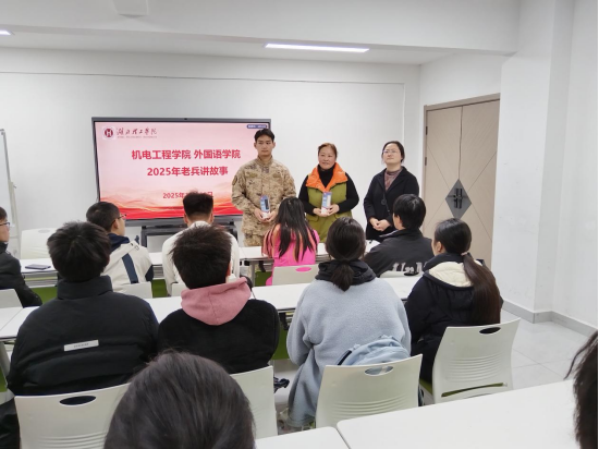 为传承红色基因、弘扬爱国精神,12月18日,机电工程学院与外国语学院在求实一站式社区102室联合举办老兵讲故事活动。本次活动特邀学校退休教师、离退休第四党支部书记、校关工委“五老”王珊、机电工程学院退役士兵李文豪来分享他们的军旅生活与人生感悟,机电工程学院党总支部副书记熊泽敏、外国语学院党总支部副书记易定国及两院30余名同学参加了此次活动。